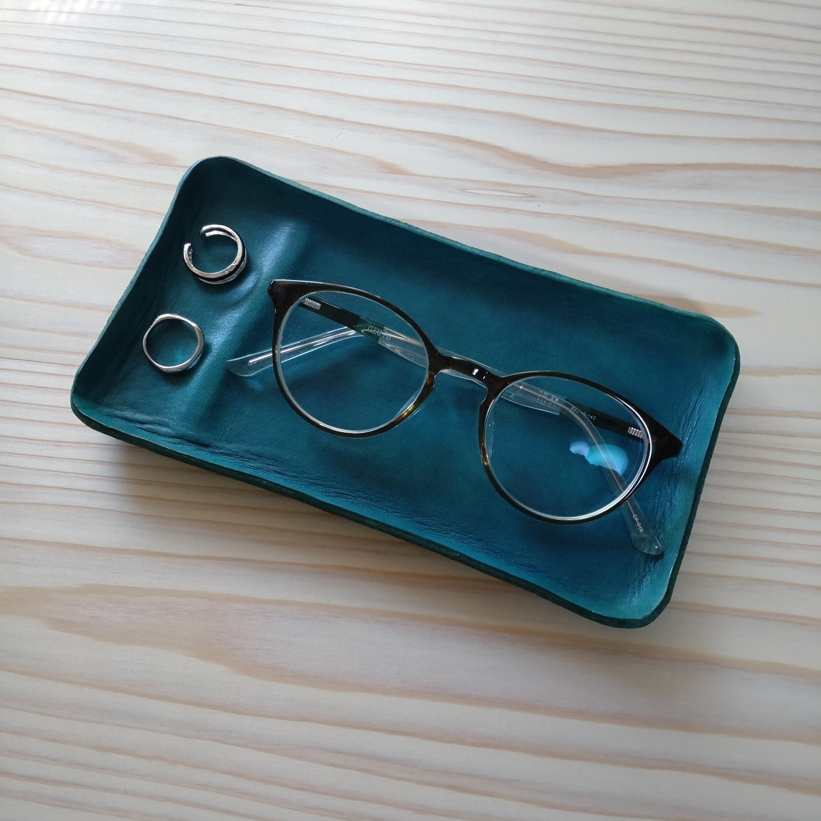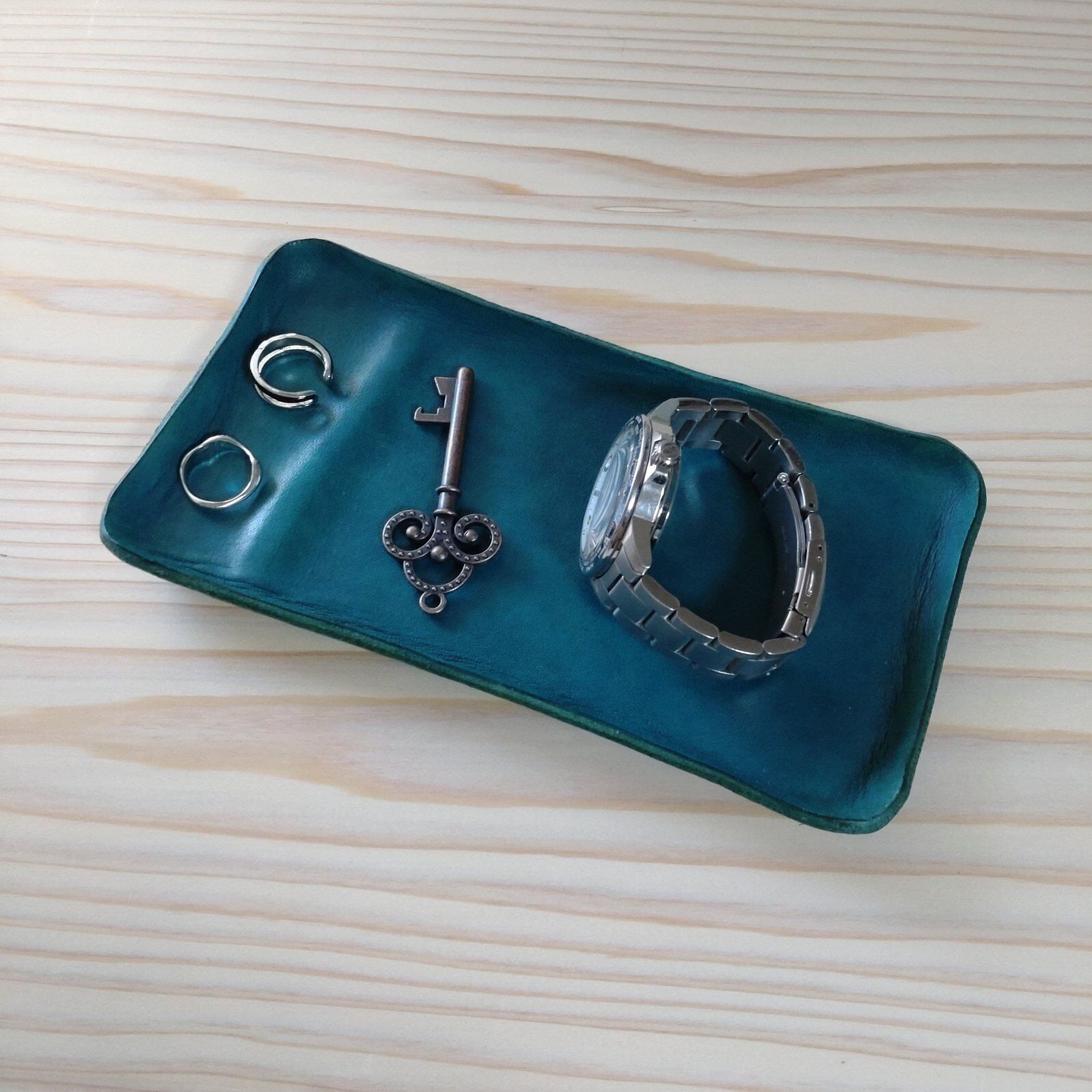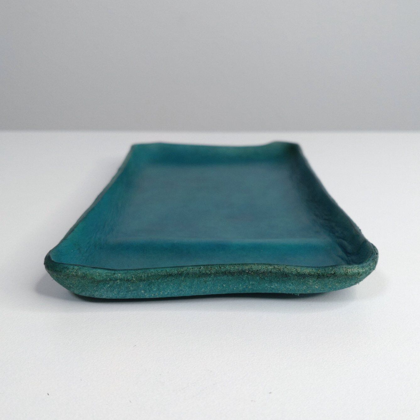 一枚革のレザートレイ/縦仕切り/ブルーグリーン