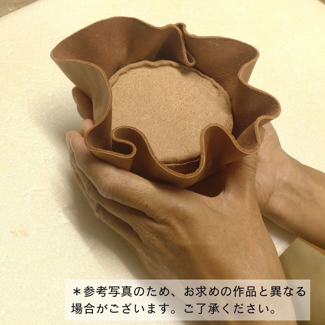 革のやさしい手触りや温もりある風合いをお楽しみいただけるよう、縫製をせず、角のない器に仕上げました。