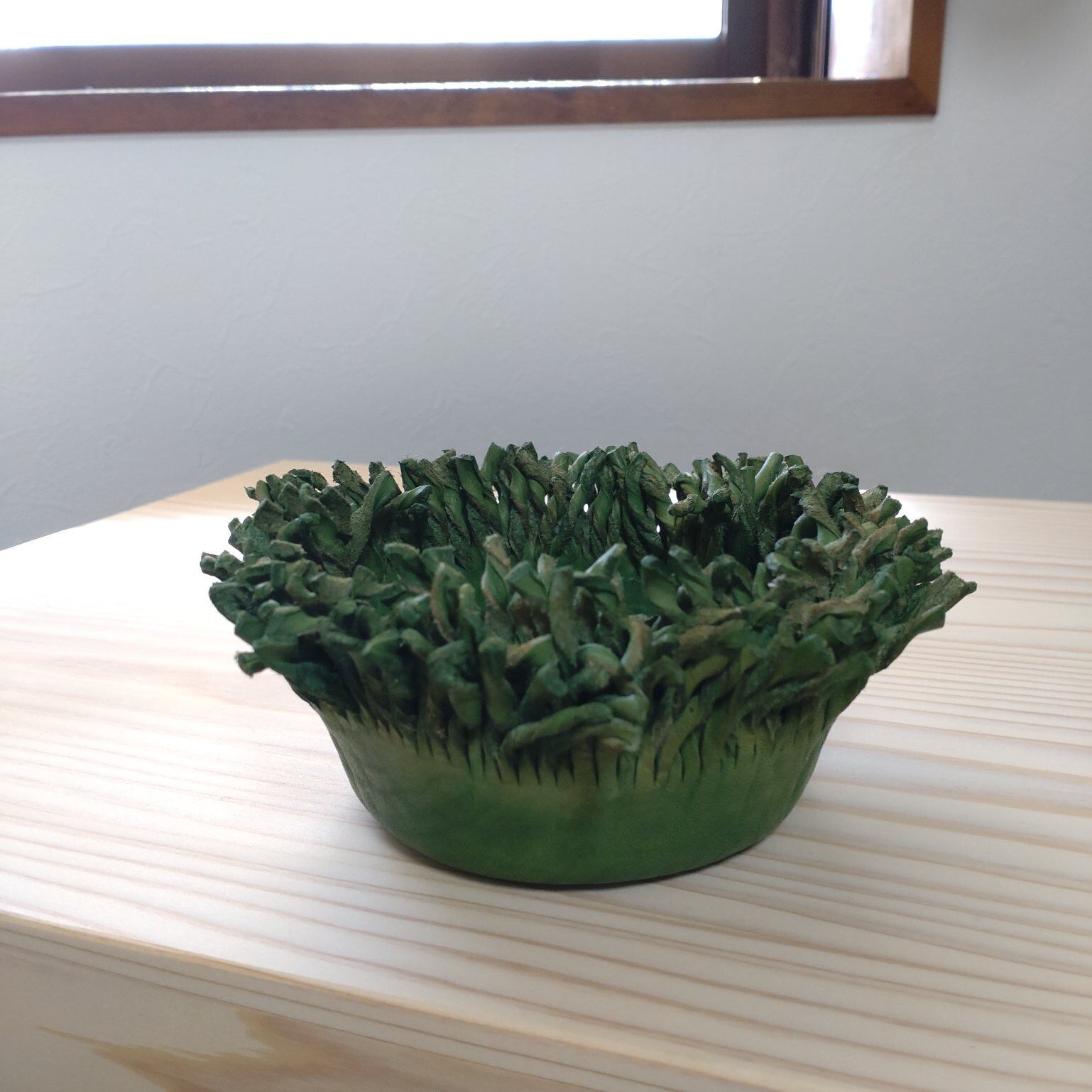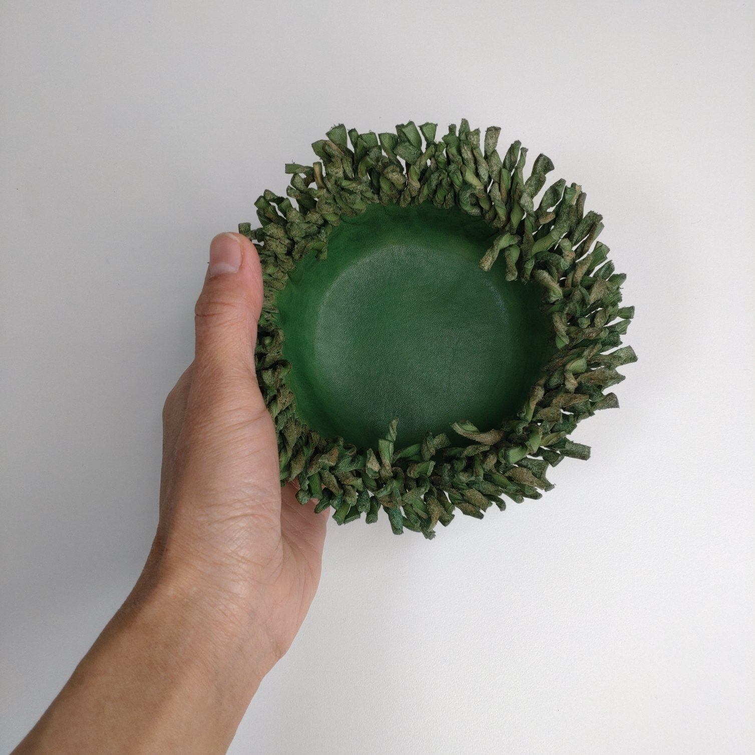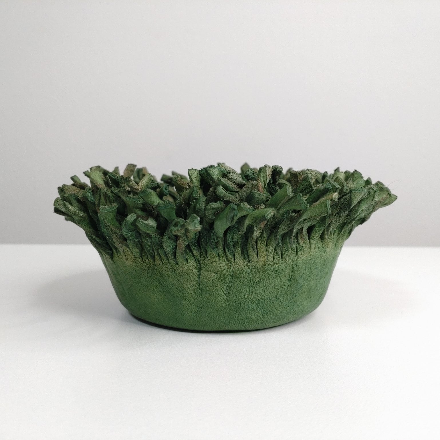 縫い目のないヌメ牛革の器/モジャモジャ#オリーブグリーン系
