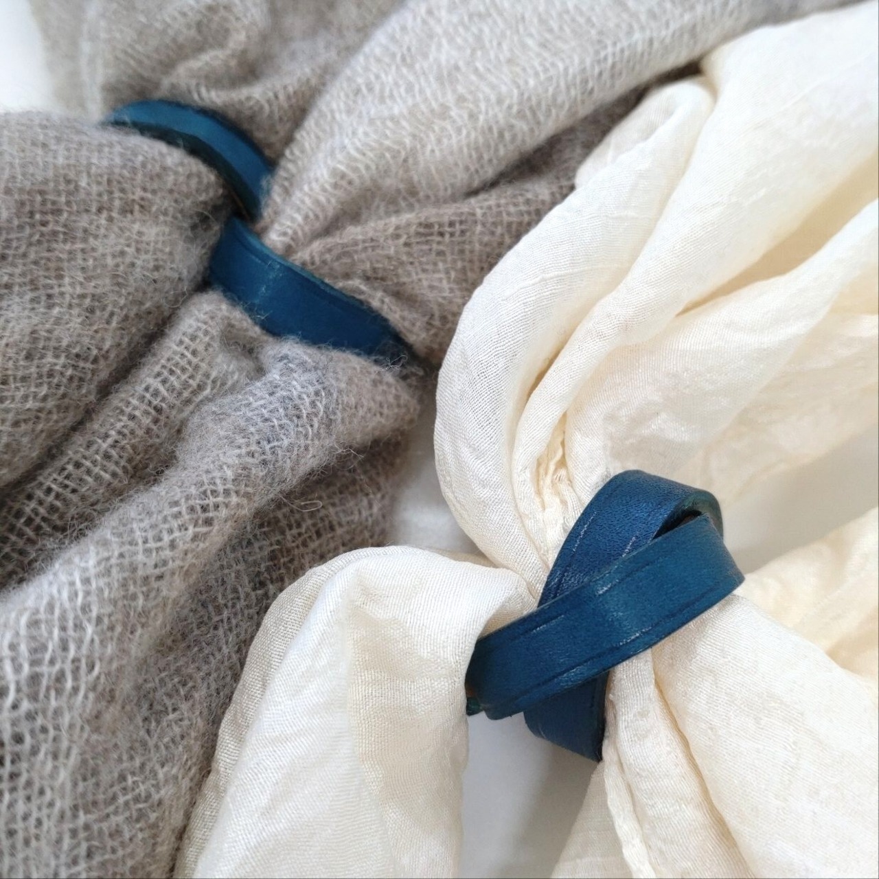 染色をしていないので、スカーフと内側の革が擦れて、革の色が大切なスカーフに移る心配を軽減しています。