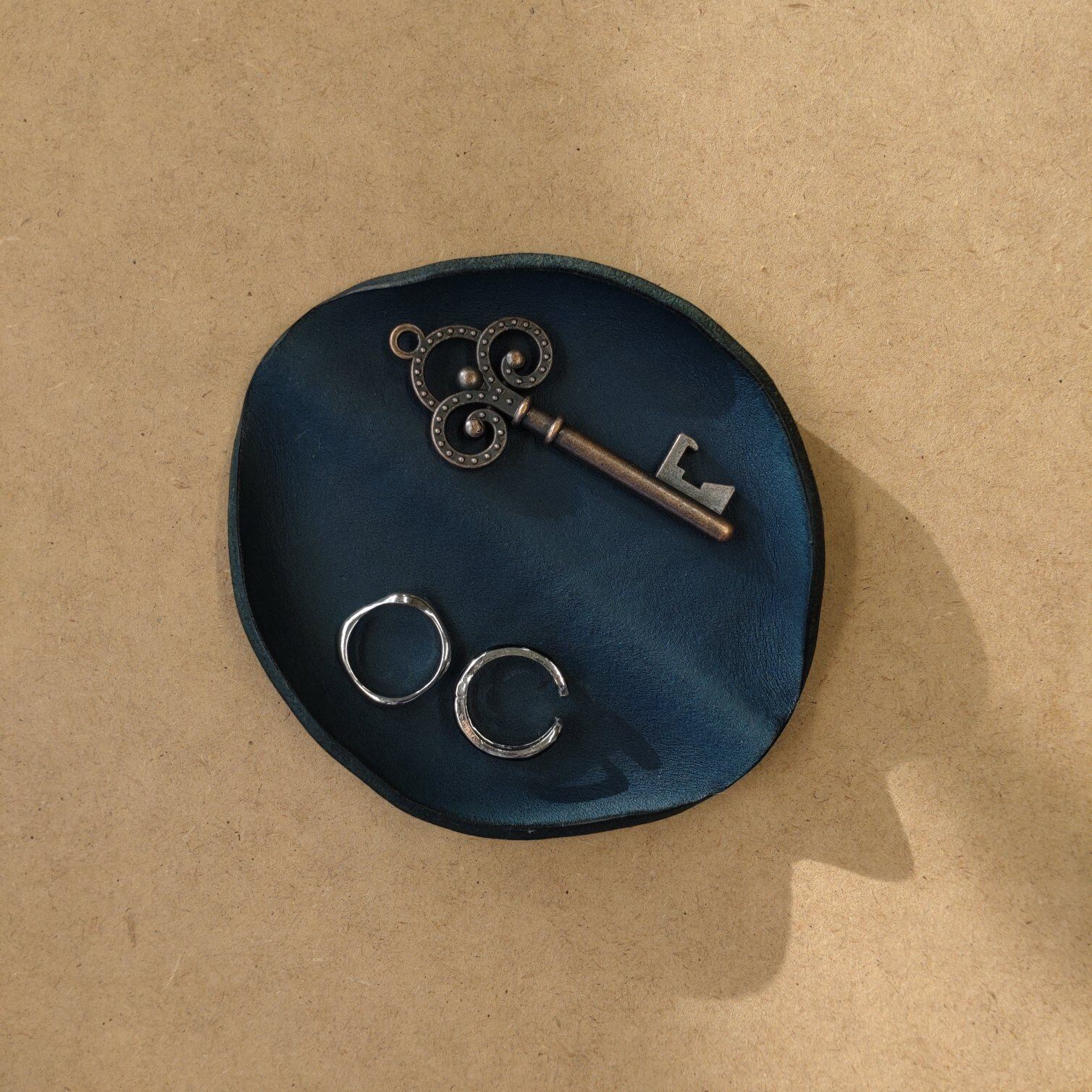 〔セット売り〕一枚革のレザートレイ 大小 /ネイビーブルー